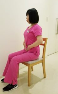 イスに座り背筋を伸ばす、または、仰向けに寝て膝を立てた姿勢で行う。